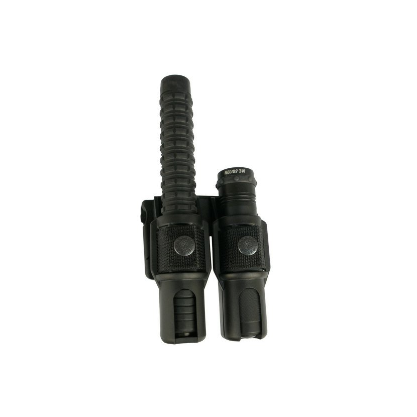 Dvojité plastové otočné pouzdro je sestaveno z pouzdra BH-04 (pro obušek délky 16", 18" nebo 21") a z pouzdra LH-04 (pro svítilnu) spojených speciálním adaptérem. Výhodou tohoto řešení je úspora místa na opasku. Konstantní poloha obušku a svítilny zlepšuje orientaci na opasku při volbě vhodného prostředku. Obě pouzdra se vůči opasku otáčejí společně a jejich vzájemná poloha se přitom nemění. Adaptér umožňuje jednoduše přizpůsobit pouzdra pro nošení na pravé nebo levé straně. Upínací spona dovoluje rychlé nasazování pouzdra na opasek jednou rukou bez nutnosti opasek odepnout. Pouzdro lze vůči opasku otočit v rozsahu 360 stupňů v 16 aretovaných polohách.