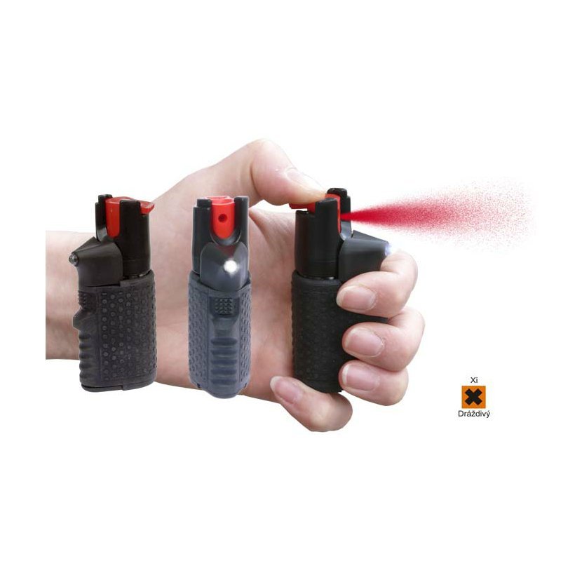 Velice praktická a skladná sprejová svítilna vychází z obranného pepřového spreje typu HURRICANE. Na tento sprej je nasazen miniaturní adaptér, který obsahuje kompletní LED svítilnu a gumovou objímku. Sprejová svítilna HURRICANE Flashlight je díky malým rozměrům ideální pro ženy, neboť jim v kabelce nezabere mnoho místa. Může být neocenitelným pomocníkem při jejich pohybu v potencionálně nebezpečných lokalitách.