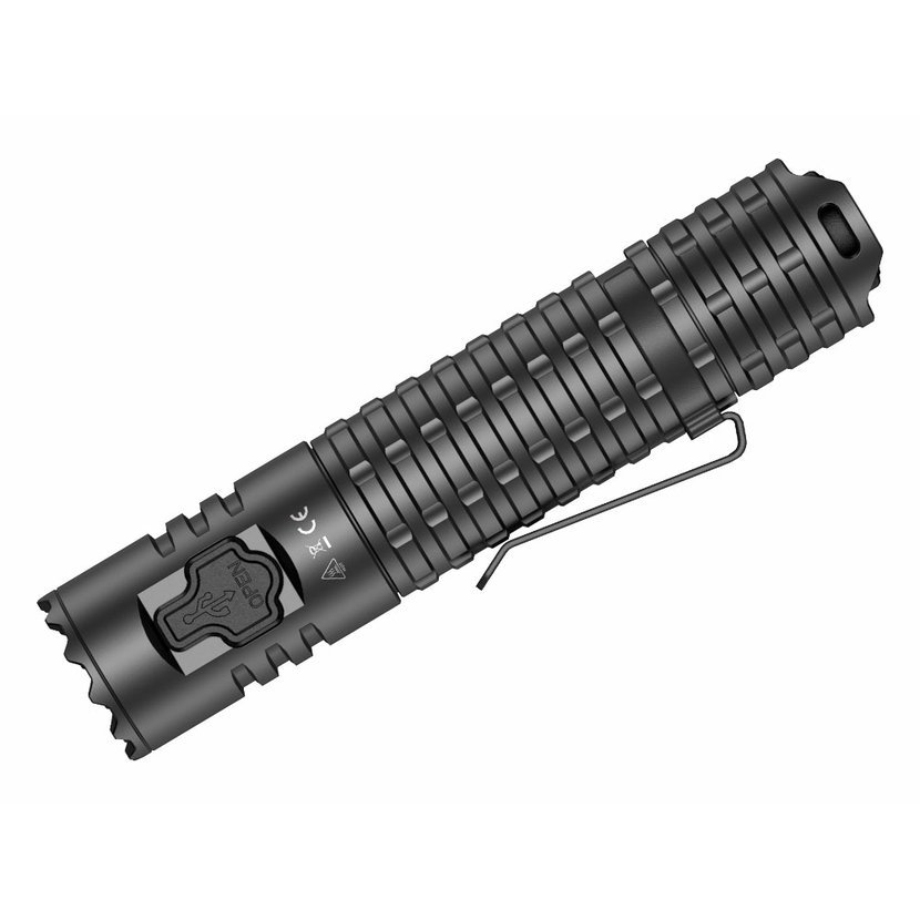 Svítilna má vestavěný USB-C konektor, který je chráněn gumovou krytkou. Díky němu můžete vložený akumulátor typu 18650 nabíjet přímo ve svítilně, kdykoliv máte k dispozici zdroj energie. Tímto způsobem svítilnu zcela nabijete asi za 4 hodiny.